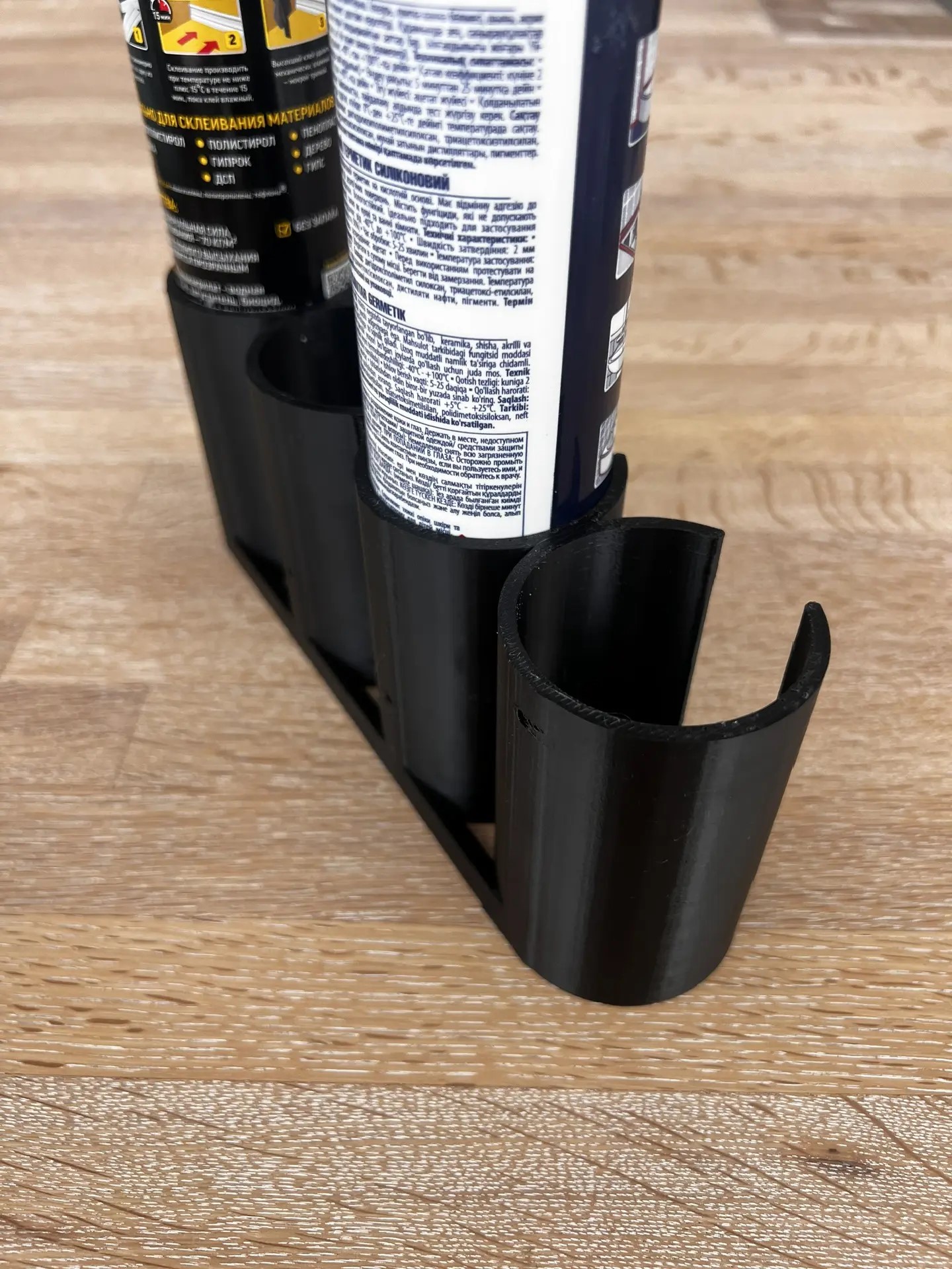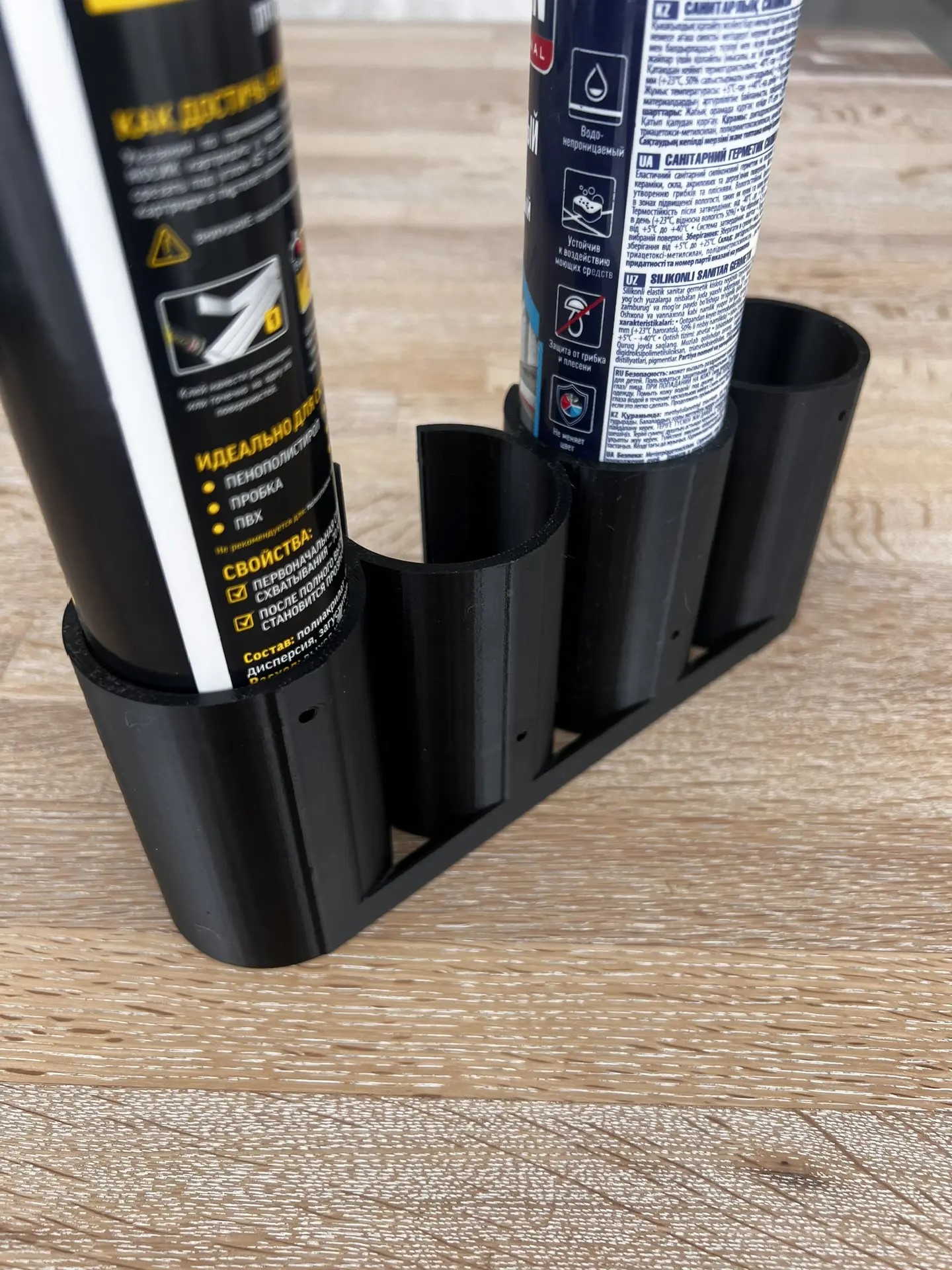 Настенный держатель-органайзер для 4 баллончика герметика черного цвета помогает правильно организовать рабочее пространство, и оптимизировать использование каждого сантиметра свободной площади. держатель для герметика или органайзер для герметика позволит удобно расположить три тубы с герметиком, смазкой или другими техническими смазками, диаметром до _____ мм и станет идеальным местом их хранения краски в гараже, на балконе, складе или мастерской, в кладовке и в других местах. Обеспечивает порядок на рабочем месте и быстрый доступ к баллончикам с краской, который легко можно достать для работы и по завершению - вернуть на место хранения.